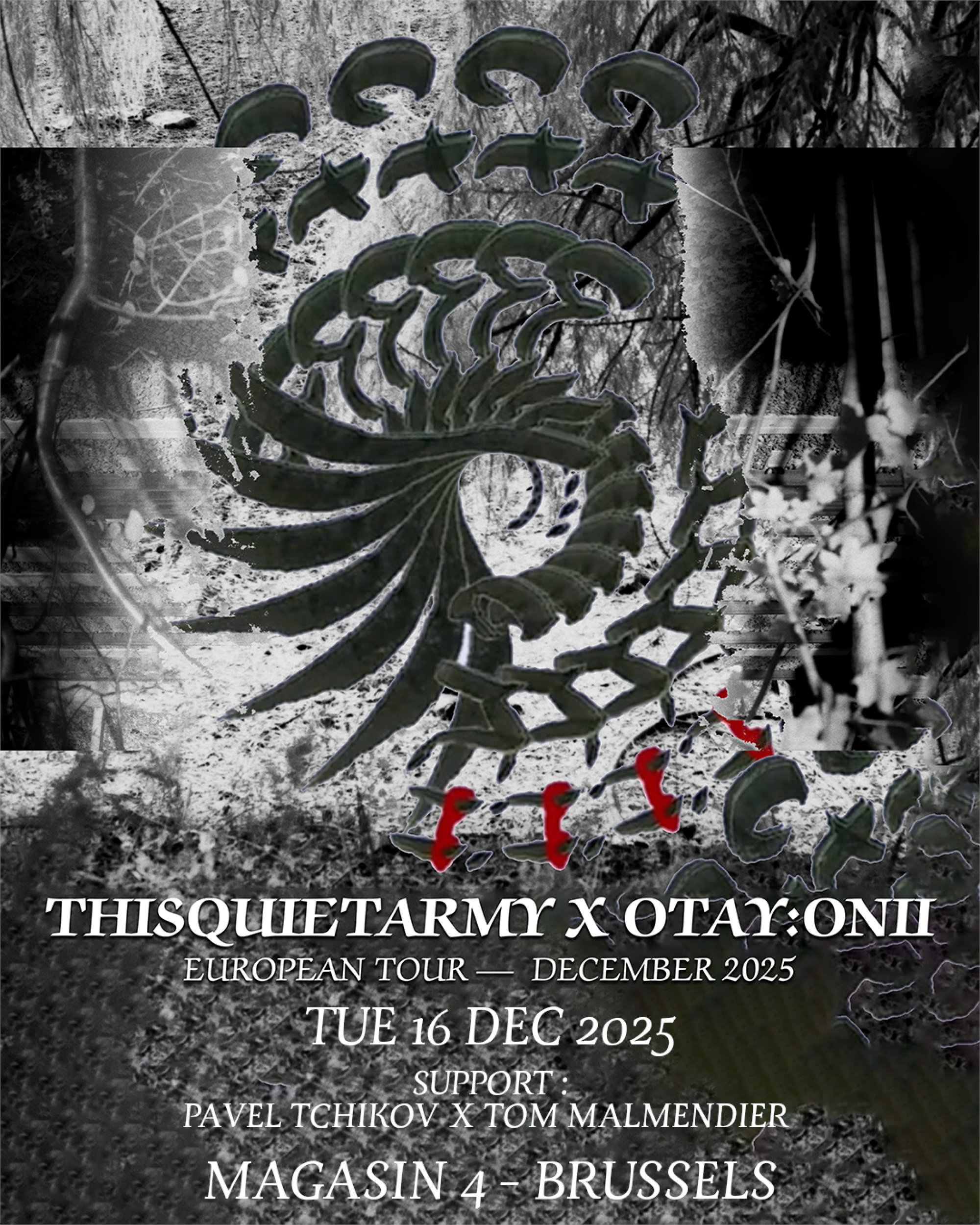 This collaboration between thisquietarmy (Eric Quach) and otay:onii (Lane Shi) traces its origins to a European tour in Spring 2023, where both artists crossed paths as part of Hypnodrone Ensemble—a Berlin-based collective led by Quach and Aidan Baker. The duo recorded in the summer of 2023 in Montreal, further unleashing a hauntingly immersive album —fusing Quach's dense, atmospheric guitar drones with Shi’s visceral vocals and textural sensibilities, blurring the edges between drone, avant-garde noise, and experimental vocal performance. The result is a dialogue between ethereal dissonance and visceral emotion, a powerful convergence of post-industrial ambience and emotionally charged experimentation—capturing the tension, intimacy, and unpredictability of their performative chemistry.